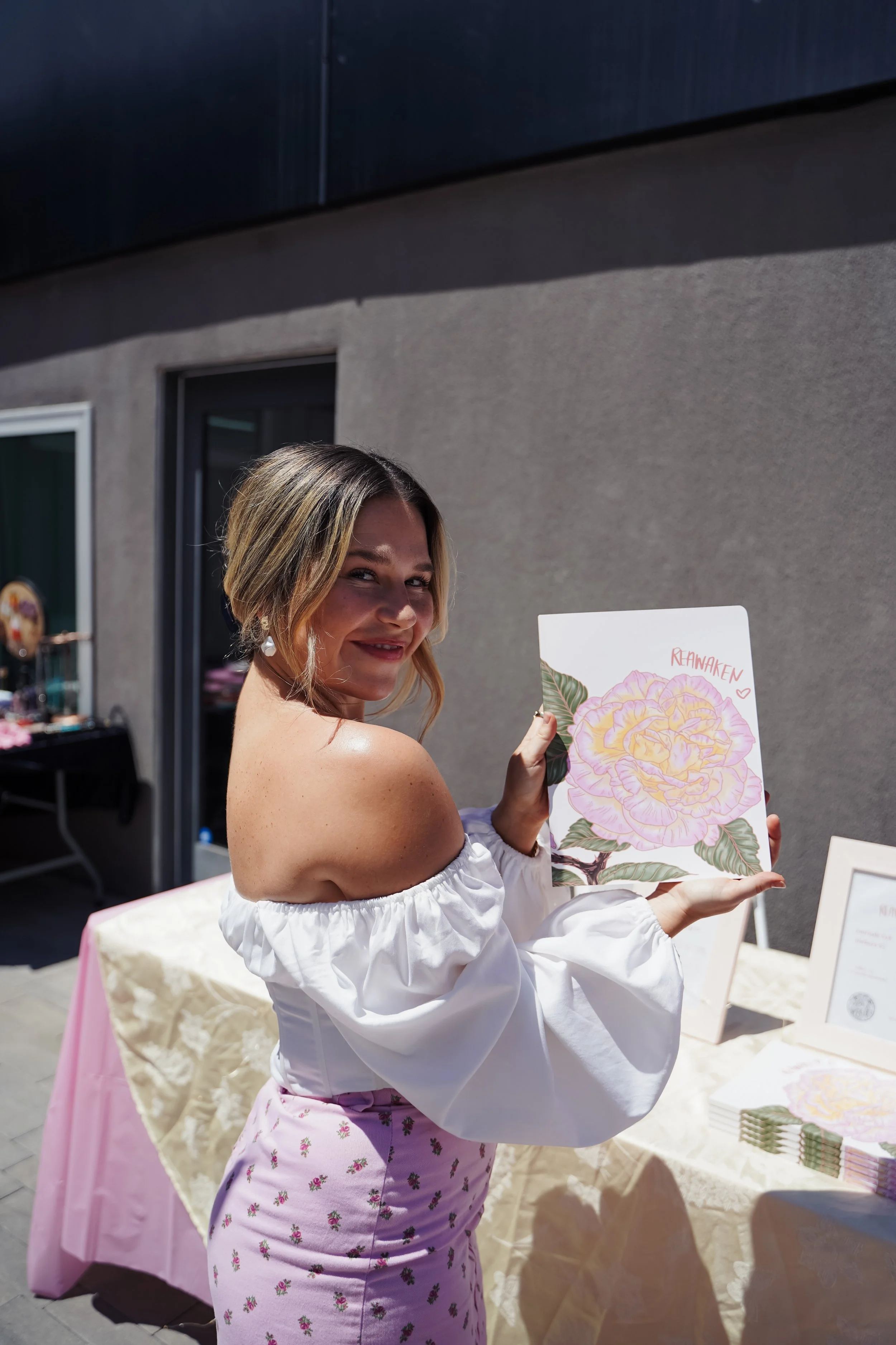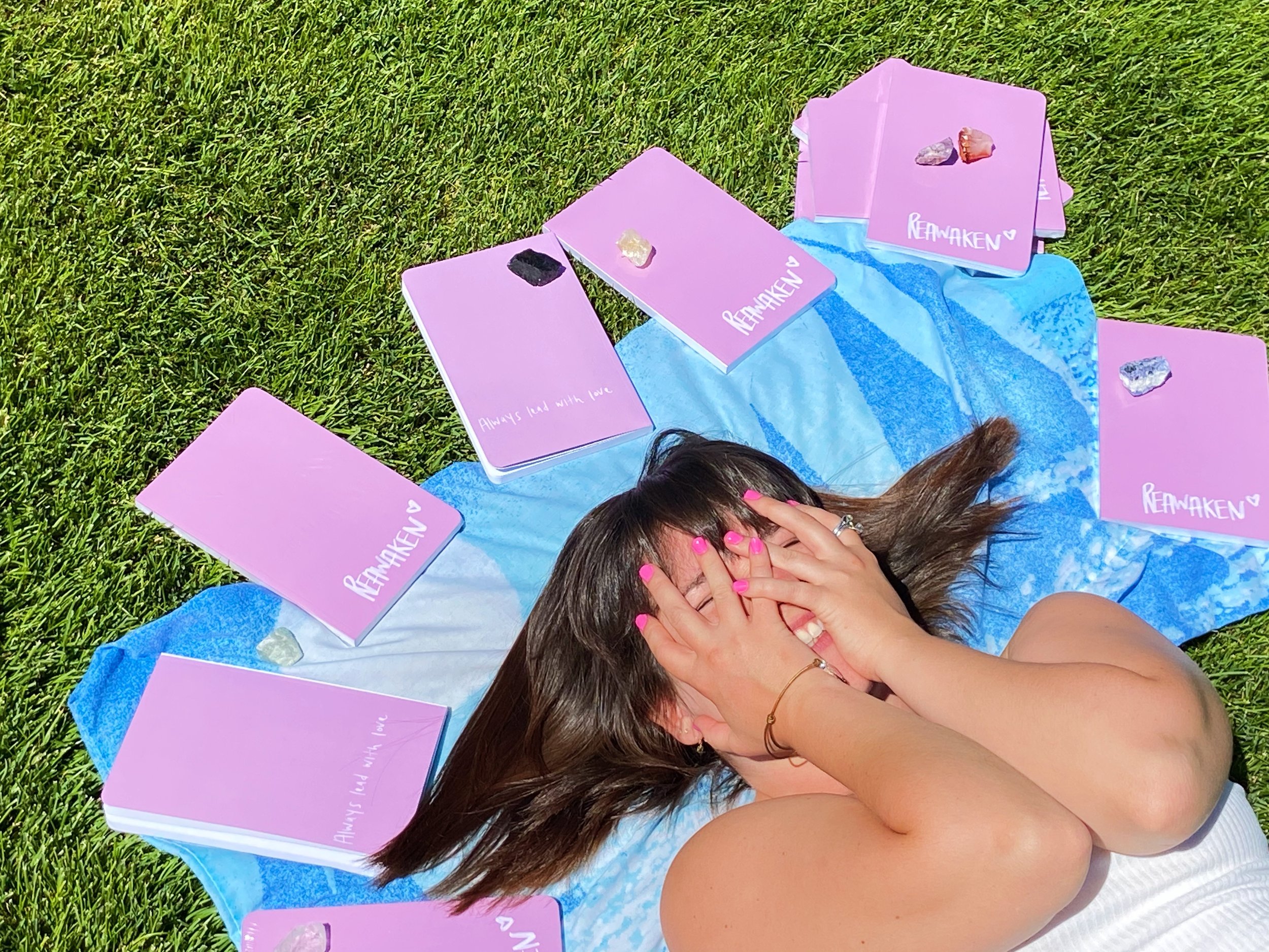 As Reawaken grew, Reanna wanted to create something tangible to carry the practice beyond the screen. That ping led to the creation of two journals — both of which sold out, including a collaborative edition with artist and friend Miriam Gutierrez. These journals became tools for self-inquiry, ritual, and daily remembrance, extending the spirit of Reawaken into people’s homes and personal lives.