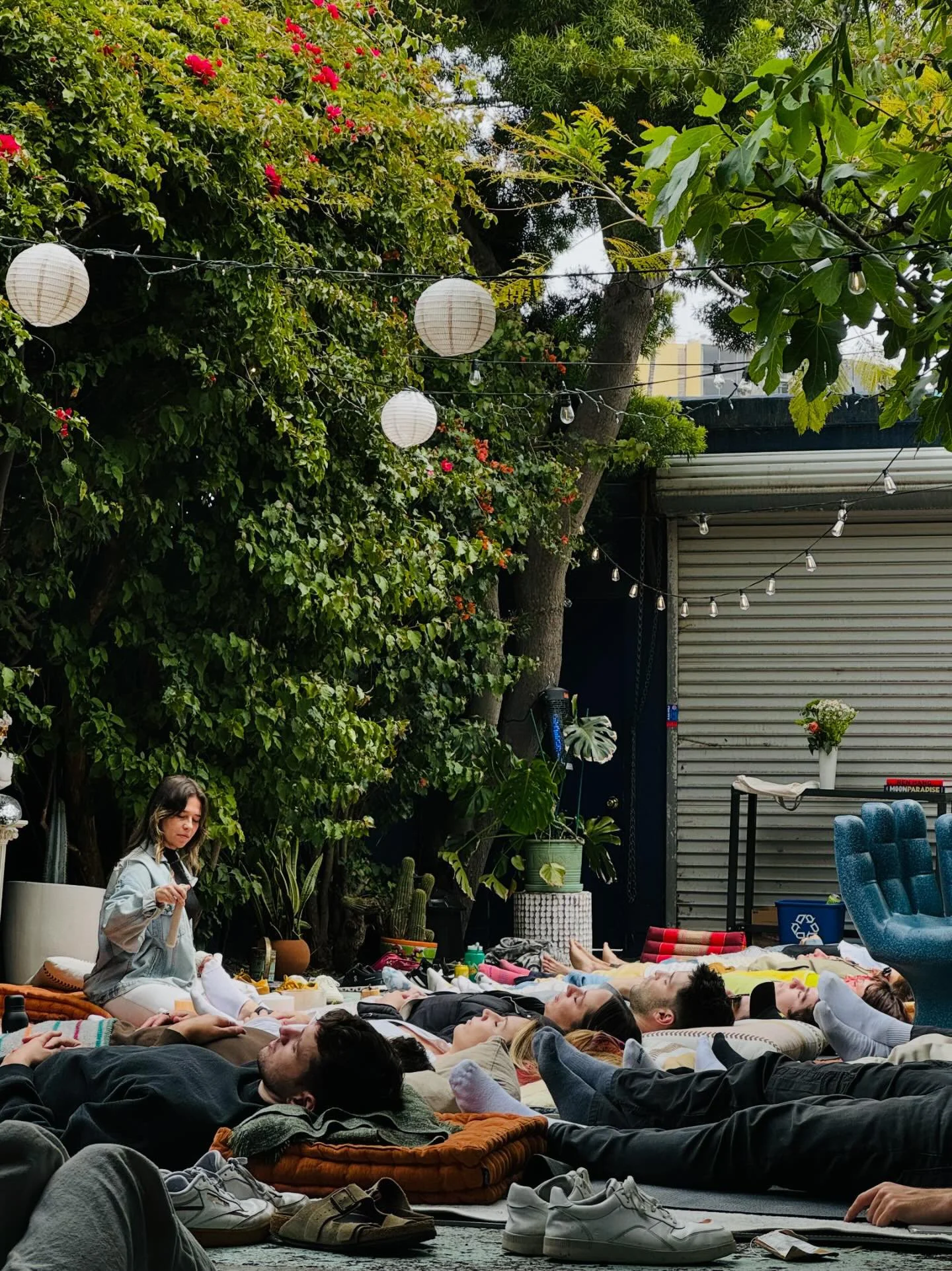 Along the way, sound healing naturally emerged as a central pillar. What began as quiet reflection evolved into embodied experiences weaving together sound, journaling, and movement. Reawaken moved from online gatherings into physical spaces, offering immersive sound baths and community events throughout Los Angeles and beyond.